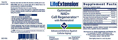 ReleaseDate : 2017-07-31 Studio : Life Extension HPC Publisher : Life Extension HPC Binding : Health and Beauty Product Description Optimized NAD Cell Regenerator with Resveratrol combines unique nutrients for longevity and youthful cellular energy production. NIAGEN nicotinamide riboside, trans-resveratrol, quercetin, fisetin, trans-pterostilbene, and more support healthy cellular metabolism, fight age-related fatigue, regulates genes that control aging, and more. Take the fight against aging to the cellular level with Optimized NAD Cell Regenerator with Resveratrol! 0