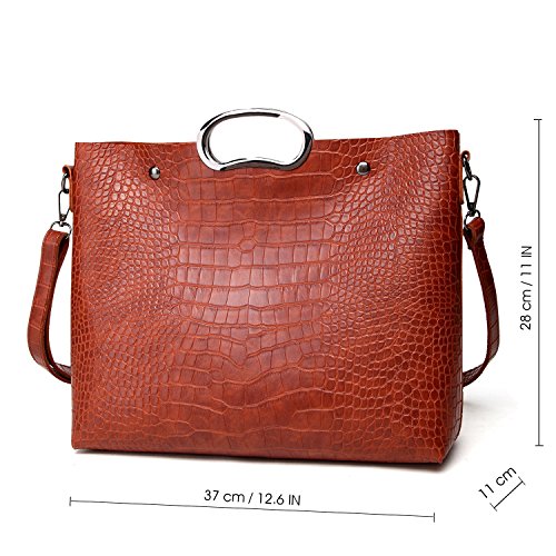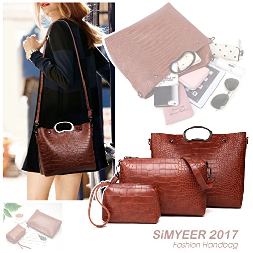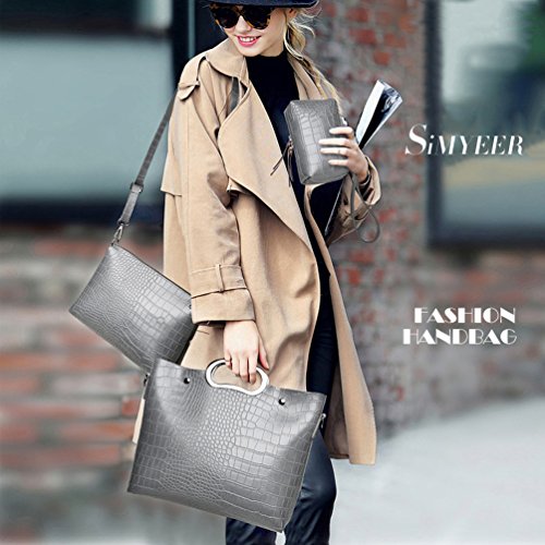 -. Brand : SiMYEER -. Department : womens -. Feature : MATERIAL: High Quality PU Leather / CLOSURE: Top magnetic iron buckle closed / DIMENSIONS: 12.6"W x 4.3"W x 11"H, Strap Drop Length: 9.1" / FEATURES: Decorative Gold-tone Hardware,Detachable Shoulder Strap and Top magnetic iron buckle closed / AFFORAABLE:Buy 1 get 3!!! The package including: a large bag + a midium crossbody bag with adjustable shoudler strap + a small purse/wallet -. ProductGroup : Shoes -. ProductTypeName : HANDBAG -. Title : SiMYEER Women Top Handle Satchel Handbags Shoulder Bag Top Purse Messenger Tote Bag 3 Bag Set