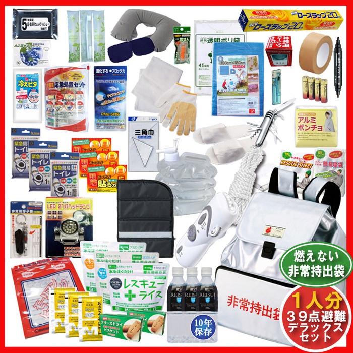 원본상품명: 防災セット 防災グッズ燃えない39点DX防災セット (10年保存水 難燃リュック 一人用 防災グッズ 防災セット 非常食 アルファ米 保存食 非常持ち出し袋プロ推? 万全袋 非常用簡易トイレ 7年保存食 緊急避難セット 避難袋 地震 災害?策 防災ラジオライト)