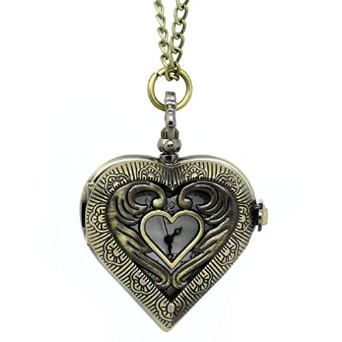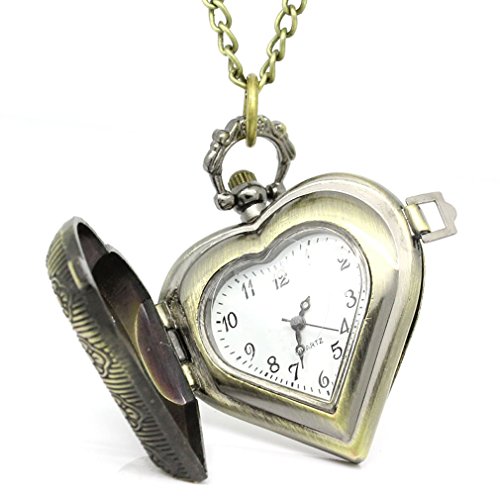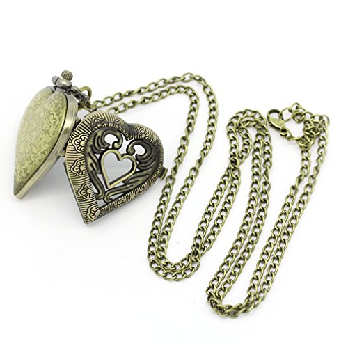 -. Title : Souarts Antique Bronze Color Shape Heart Quartz Pocket Watch