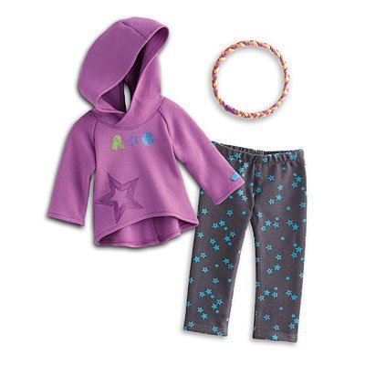 - Her favorite anytime outfit is starry and bright! This set includes: A cozy hoodie with a crossover neckline and high-low hem Extra-long jeggings covered with blue stars Ballet-flat shoes with contrasting glitter toe caps A three-color braided headband A round "Loyal" charm