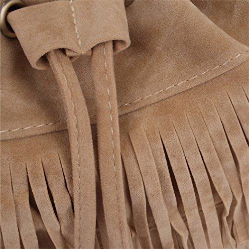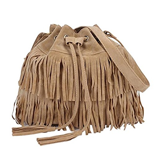 -. Feature : Made of high faux leather, very durable and fashionable. / Fashion faux leather tassels drawstring closure shoulder bag for women. / Features: Large Shoulder Bag, Drawstring Closure, Tassels Decor, Durable / Size: 31cm x 26cm x 13cm/12.20" x 10.24" x 5.12" (Approx.) / Occasions: Travel, School, Shopping, Gift, Daily Life, etc.