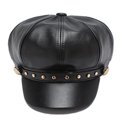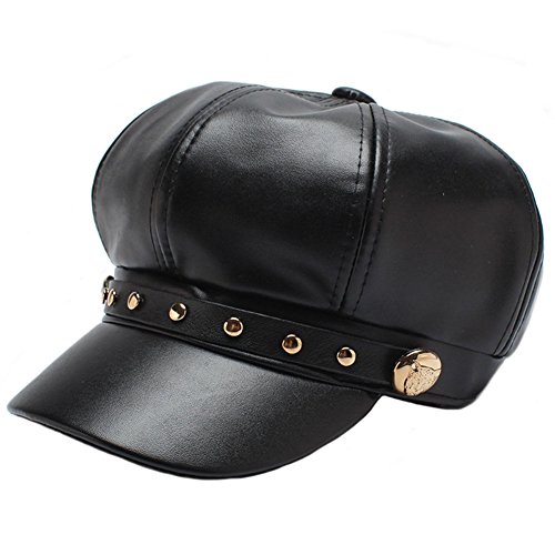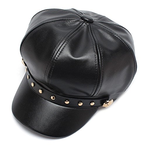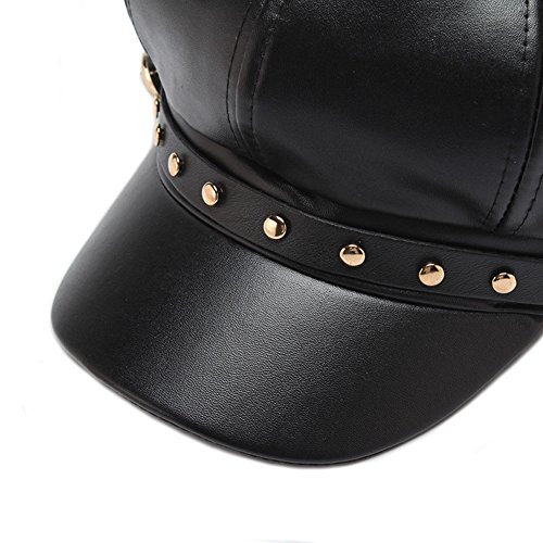 (HH HOFNEN)/Accessories/Hats/DIRECT FROM USA/HH HOFNEN Faux Leather newsboy Cap With Rivets Fashion Black Cabbie Visor Berets