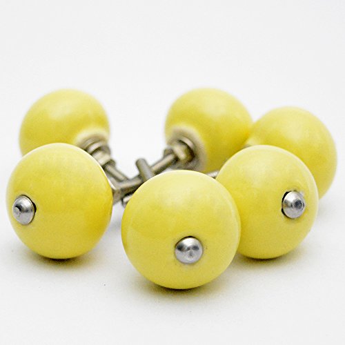 Pack of 6 Yellow Classic Ceramic Round Knobs Pulls Handles for Cabinets Drawer Dresser Closet Wardrobe Cupboard Kitchen Door Furniture