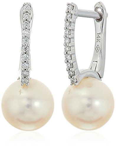 -. Title : 14k Gold 7.5-8.0mm Cultured Freshwater Pearl Hoop Earrings (1/10 cttw, H-I Color, I1-I2 Clarity)