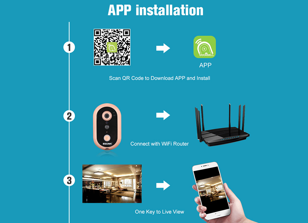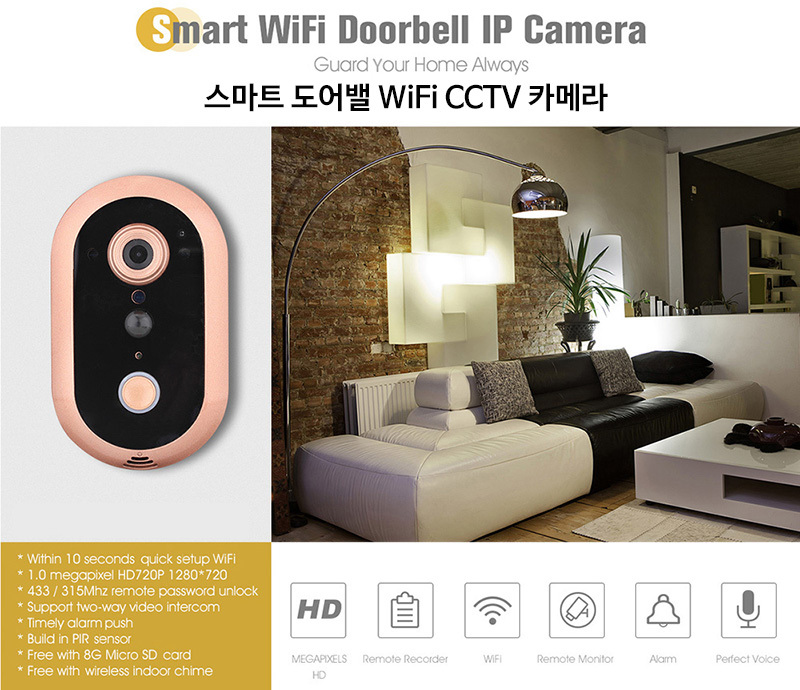EGIS 스마트 도어벨은 무선 WIFI와 연결하여 방문자가 초인종을 누를때