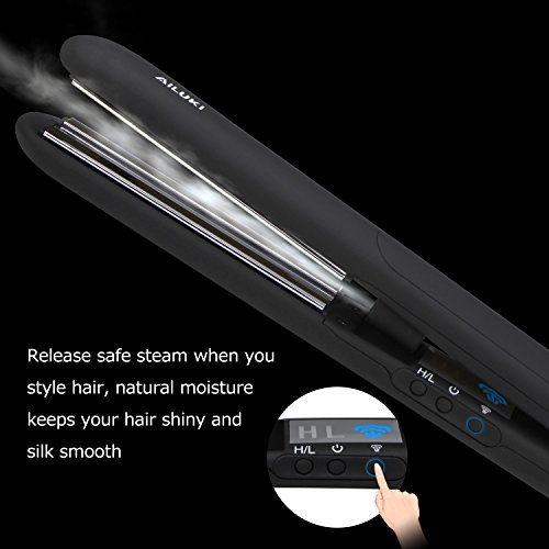 PROFESSIONAL STEAM SALON HAIR STRAIGHTENER:This hair straightener is designed with the newest steam function to straighten hair quickly and evenly,and protect your hair from being damaged by high temperature