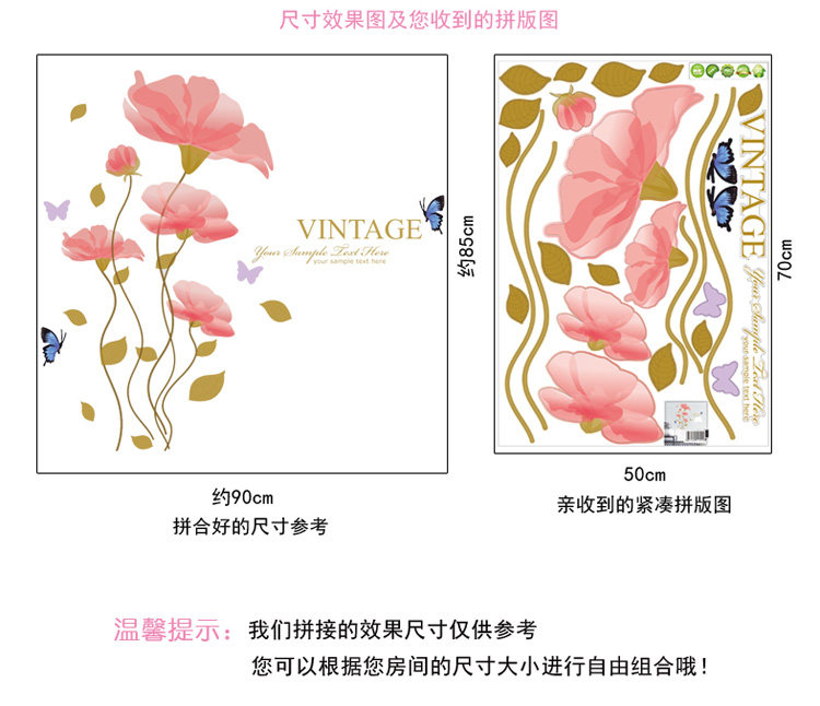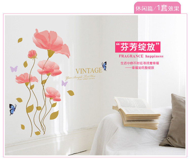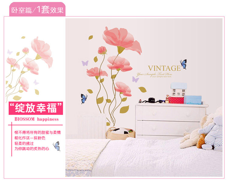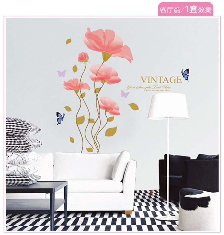 可移除墙贴纸 妖娆花朵 电视墙贴背景墙贴画墙纸贴客厅卧室装饰