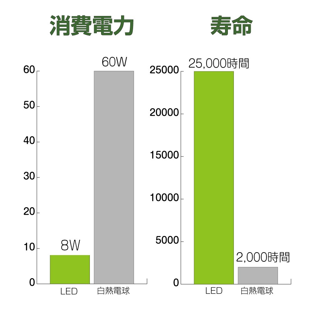 Adopting a new LED that has become more efficient, it corresponds to the conventional 60w type incandescent bulb, but it can reduce the power consumption and electricity cost by light emission at low power, and it is easy for households.