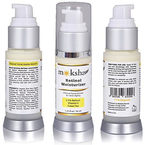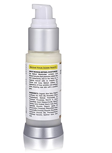 MOKSHA PREMIUM RETINOL MOISTURIZER CREAM Our premium 1.25 oz. airless pump bottle of Moksha Beauty Retinol Moisturizer Cream is the most effective on the market to deliver amazing results for your skin. The Retinol Moisturizer harnesses the power of ingredients like Vitamin A, E, Hyaluronic Acid, and Green Tea to deliver power hydration and healing within your skin. We’d call that winning for sure! A MUST HAVE FOR BEAUTIFUL WOMEN We want you to see, feel, and harness the power of your true beauty. And we understand that it all comes down to how you feel in your own skin. If your skin is on-point and glowing, it’s pretty hard not to have an incredible day. We want you to have as many awesome days as possible, and so we’ve created premium skincare products that go the distance to help you truly believe in yourself and your beauty. EXPERIENCE THE MOKSHA DIFFERENCE We are passionate about luxury skincare that actually makes a difference in the texture, radiance, and health of your skin. You can purchase with complete confidence knowing that we stand behind our product! If you don’t love it, we’ll give you a full refund. Take your beauty to the next level with our premium Retinol Moisturizer! 0 |
