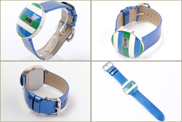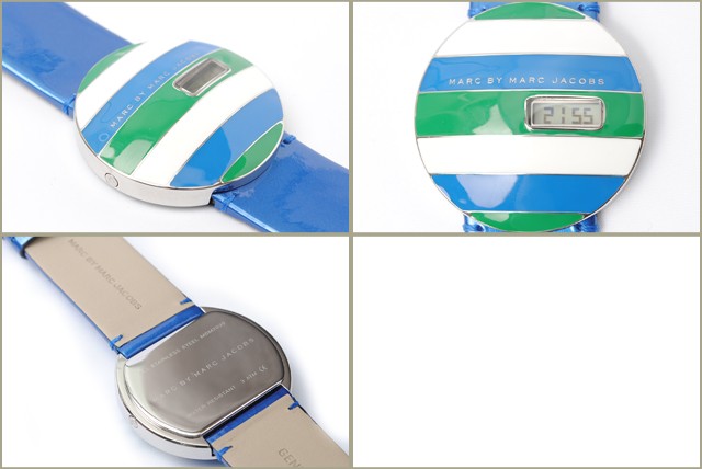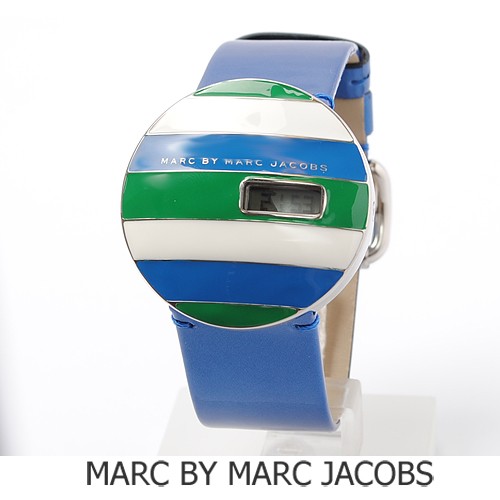 海外でも、発売時より大変人気があり、レア・入手困難品です。 フェイスが大きめで、程よく重厚感があり、手首が細く見えます。 3本ラインのストライプカラーは、さわやかな色合いで、これからの季節にも大活躍。 小窓から時間と分がデジタルで表示されており、遊び心いっぱいのファッショナブルな時計です。 MARC BY MARC JACOBSのロゴがしっかりデザインされております。