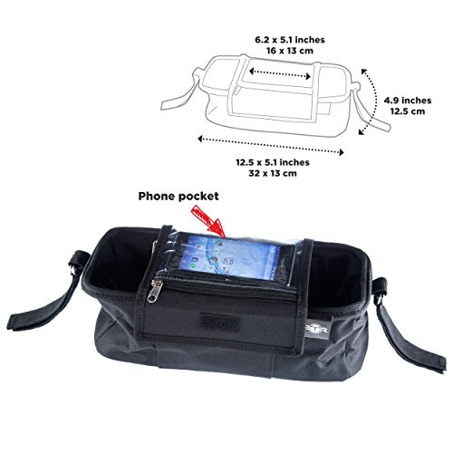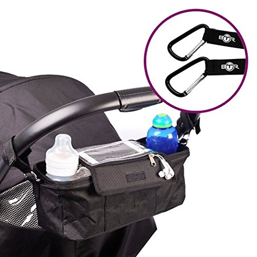 -. Title : BTR Kinderwagen- / By-Organiser, Aufbewahrungstasche mit Mobiltelefon-Halter, Regenschutz und 2 Kinderwagenbefestigungen (Clips) - schwarz - wasserabweisend