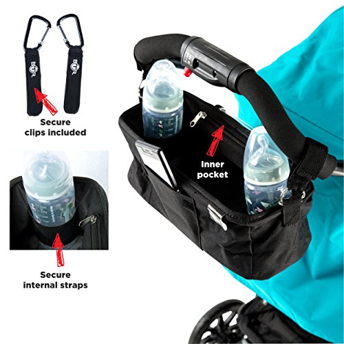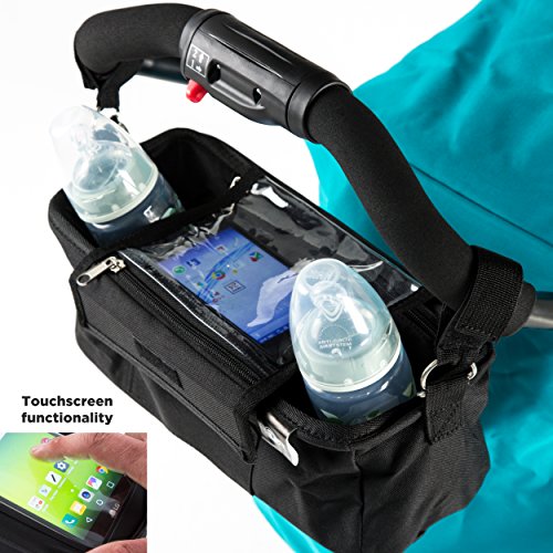 -. Feature : 32,5cm lang x 13cm breit x 13cm hoch ** Jetzt mit zwei zusätzlichen Kinderwagen Clips** / Die Universal BTR Kinderwagen-Tasche, mit Mobiltelefon-Halter am oberen Ende, verfügt über ein PVC Sichtfenster, welches Ihnen die Bedienung des Touchscreens Ihres Mobiltelefones weiterhin ermöglicht. Ideal, um Ihr Mobiltelefon im Auge zu behalten, während Sie unterwegs sind, sowie Ihre Baby-Utensilien in einer einfach zu erreichenden Tasche bei sich zu führen. / Die Befestigung am Kinderwagengriff erfolgt durch ein Klettverschlussband, welches Ihnen ermöglicht die Aufbewahrungstasche in Position zu halten, sowie schnell und einfach abzunehmen. / Mit Stauraum, sowie zwei elastischen Riemen zur Aufbewahrung von Babyflaschen, Schnabeltaschen, Wasserflaschen oder Dosen. Diskrete externe Tasche, Innentasche und interne Reißverschlusstasche. / Ein einfach zu verstauender Regenschutz wird mitgeliefert, um Ihre Utensilien trocken zu halten oder abzudecken. Mit abnehmbarem Schultergurt, sowie zwei zusätzlichen Kinderwagen Befestigungs-Clips, welche es ermöglichen weitere Einkaufstaschen anzubringen.