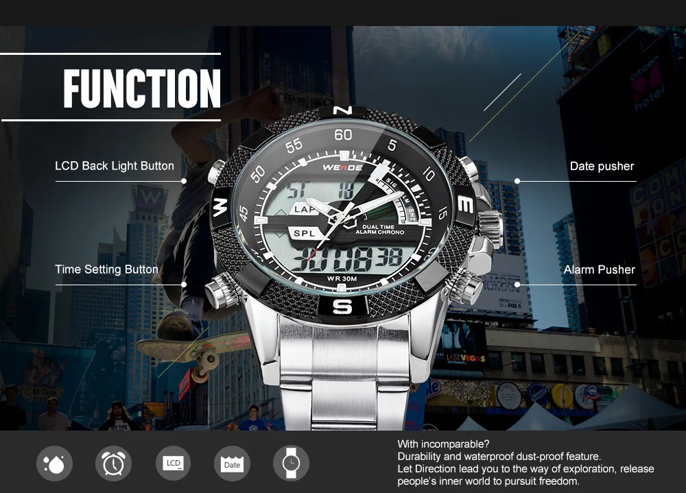 Feature:Back Light,Alarm,Water Resistant,Shock Resistant