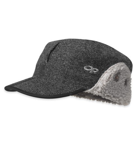 -. Feature : 60% Wool 30% polyester 10% viscose / Woven cap with 100% polyester knit lining / Flip-up, contoured ear caps with side button attachments / Machine Washable, no bleach, medium heat / Made in China