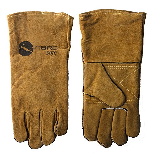 Welding glove reinforced, 14 inch, cow split leather, kevlar stitching, cotton lining. NARA SAFE