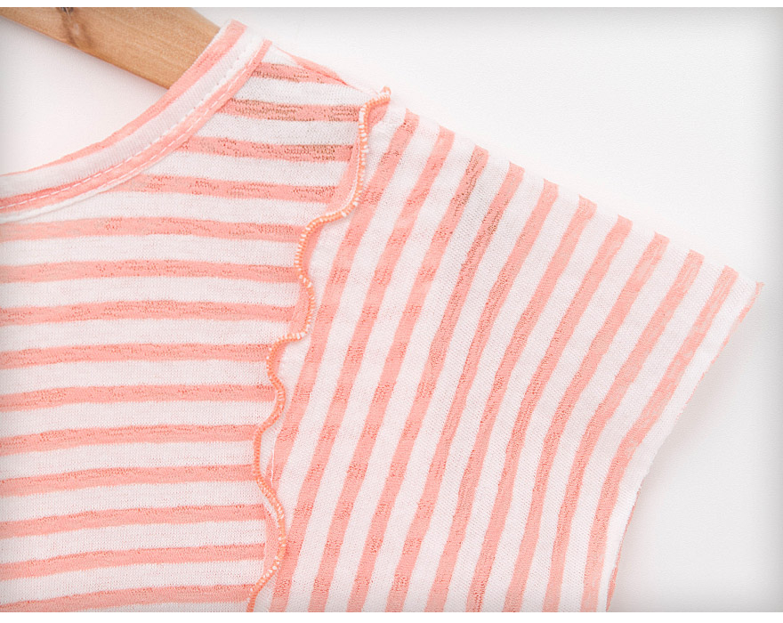 넥 라인에는 몸판과 같은 원단으로 이질감이 나지 않게 디자인 한 티셔츠입니다.
