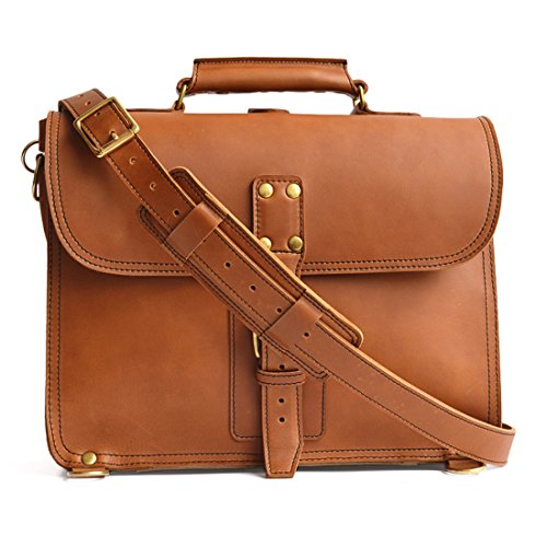 -. Feature : Handmade 100% Full-Grain Leather Briefcase. Made from the highest-quality hand-picked USA leather, superior solid brass hardware, and thick, industrial strength, marine-grade thread. / Crafted to be extremely durable. Our bags don't contain cheap, breakable parts or big gaudy logos...they're just designed and built to be loyal companions on all of the adventures that life brings your way. / Aesthetically pleasing, attractive design can be worn three ways: as handheld briefcase, shoulder/crossbody bag, or as a backpack. / 15" width version (ideal for 13" laptops and smaller). Dimensions are: Exterior: 15.2" x 5.3" x 12.8" Interior: 14.7" x 5" x 11.2" 17" width version (ideal for 15" laptops or smaller. Dimensions are: Exterior: 17.1" x 5.3" x 12.8" Interior: 16.6" x 5" x 11.8" / We make leather products with the finest leather at the highest standard. Our collection represents many months of research and product testing. We are confident that our products will last several decades or even your whole life.