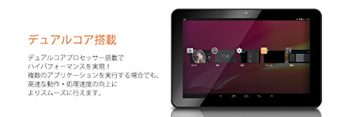 -. Feature : CPU Allwinner A33 Cortex A7 クアッドコア・プロセッサー 1.2Ghz/GPU Mali-400 MP2 / メモリ 1G DDR3/ストレージ16GB / OS Android 4.4 /Bluetooth® Bluetooth® 4.0/ディスプレイ10.1インチ IPS液晶モニター・タッチパネル機能・LEDバックライト / 画面解像度1280×800(アスペクト比 16 : 10)/カメラ前面カメラ:30万画素 背面カメラ:200万画素 / 再生可能メディアmicroSDメモリーカード(最大32GB対応)/電源AC電源アダプター(AC100-240V~ 50/60Hz) 内蔵型リチウムポリマー充電池(6000mAh/3.7V)