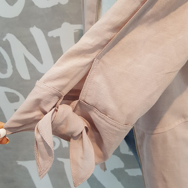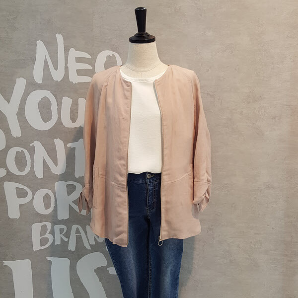 ★상품설명★ 심플한 노카라 라운드형의 집업형 린넨 점퍼입니다 소매부분 리본포인트가 고급스럽고 여성스러운 느낌을 살린 디자인입니다 가볍고 부드러운 터치감의 소재로 쾌적함을 느낄수 있는 시원한 린넨 소재입니다 자연스러운 루즈한 핏감과 적당한 기장감이 편하게 두루두루 입기 좋습니다 다양한 아이템과 함께 세련된 코디룩을 연출하여보세요