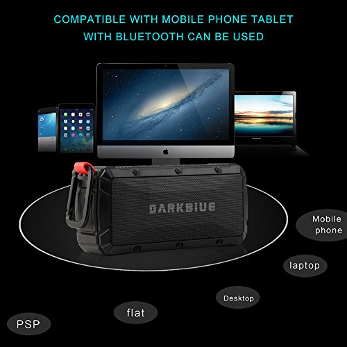 -. Binding : Wireless Phone Accessory -. Feature : AMAZING HIFI MUSIC: Super bass, Booster amplifier, Hifi with 5W*2(double Speakers, 10W+) Louder Volume with 16 core 40 mm horn, Double wave type diaphragm design,both super bass and Super tweeter owing it with advanced chips and CPU integrated bass reflex Technology. DSP audio processing technology, it streams incredible stereo sound with full range output. 12 section EQ debing ass enhancement, Support Multiple ways for sound source input, 3.5mm AUX-In Port. Hit on what you love indeed. / ULTRA OUTDOOR PORTABLE : With integrated housing high technology engineering to support Ultra light texture, easily to hand carry for outdoor and portable with, it Suitable for outdoor sports, cycling, skiing, camping, climbing, dance, party, picnic, bath, biking etc. and WITH TF MICRO SD CARD PLAY, FM RADIO :The newest generation products including support Micro SD TF Card, Support play MP3,WMA,WAV..all kinds of format music. &Support Multiple ways for sound source input, 3.5mm AUX-In Port / ADVANCED IPX6 WATER PROOF TECHNOLOGY : Boiling water at high temperature test products also playing very well , and Full water tested in laboratory , both spray mist and raindrops machine test. Excellent choice to use around pool, beach, bath, boat, car &golf cart and all water environments. It can be submersed in 3 feet of water, for 30 minutes, without issue. It ensure you can still well using with high quality music during .Take a shower and outdoor rain days. Can wash with water / LONG DISTANCE BLUETOOTH:Long distance (20m-30m) bluetooth for connection without any problem and Automatic anti-theft feature, when you pair the Bluetooth successfull / HANDS FREE &BUILT-IN RECHARGEABLE BATTERY: Built-In 2200Mah PLB high quality rechargeable battery for playing 15hours playtime. With Energy -saving auto sleep mode. Builit-In Mic to support any hand free calling freely and conveniencetly. Using intelligent double wave to reduce the noise of thin film design, whether it is listening to music or receive calls hands free can play the real original. -. Label : DarkBlue -. Manufacturer : DarkBlue -. PackageQuantity : 1 -. ProductGroup : Wireless -. ProductTypeName : WIRELESS_ACCESSORY -. Publisher : DarkBlue -. Studio : DarkBlue -. Title : DarkBlue The Newest Generation Ultra Outdoor Portable Wireless Bluetooth Speakers ,With Amazing Enhanced Super Bass,10W+ Louder Volume, Hands Free, FM Radio, TF Card, IPX6 WaterProof