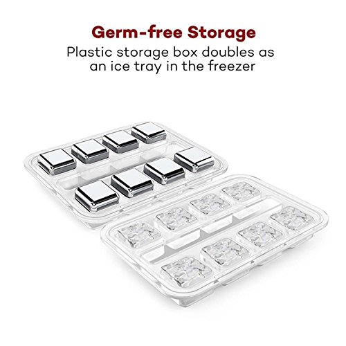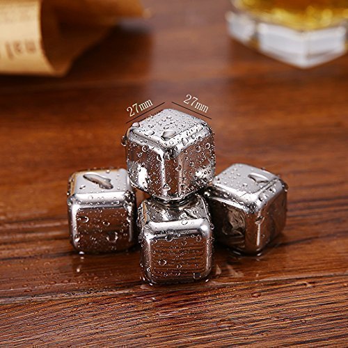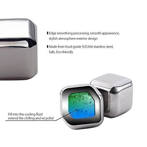 -. Binding : Kitchen -. Brand : PlushGlass -. Color : Steel -. EAN : 0045917795618 -. Feature : PLUSHGLASS SET OF 8 LARGE HIGH GRADE 304 STAINLESS STEEL CUBES: Tested, durable, anti-rust and guaranteed to "CHILL OUT" your beverage of choice! / NON-TOXIC FOOD GRADE CHILLING GEL IN THE CENTER OF EACH CUBE: Say goodbye to the days of watered down drinks! Our steel cubes provide MAXIMUM chilling advantage. / IDEAL FOR ANY DRINK, ALCOHOL OR NON-ALCOHOLIC BEVERAGES: CHILL and ENJOY the full refreshing flavor of your favorite drink. / EASY TO USE AND CLEAN: Freeze for 4 hours before use. / 100% BPA free and FDA certified. 8 stainless steel ice cubes, tongs & freezer storage box included. -. Label : PlushGlass -. Manufacturer : PlushGlass -. ProductGroup : Kitchen -. ProductTypeName : HOME -. Publisher : PlushGlass -. Studio : PlushGlass -. Title : Whiskey Cubes - Wine Chiller - SET OF 8 Stainless Steel Cubes - PLUSHGLASS Chill Out - Reusable Ice Cubes - Tongs and Freezer Box -. UPC : 045917795618