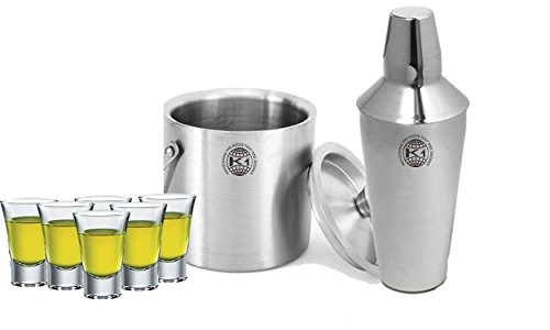 -. Binding : Kitchen -. Brand : King International -. Color : . -. Feature : Bar Set | Bar Tools | Bar Accessories Set Of 8 Pieces Includes 6 Shot Glasses | Ice Bucket | Cocktail Shaker | / Wine Glasses 8x8x9 cm| Cocktail Shaker - 6.4 X 6.4 X 25.4 cm | Ice Bucket- 15.8 X 15.8 X16.5 cm / IDEAL FOR ANY LEVEL - If you're looking to mix up delicious and refreshing cocktails that you'll want to serve again and again at your next cocktail party | then this is the set you'll need. It's durable | rugged | washable and great to train the beginner bartender | as well as to be enjoyed by the pro's. Recommended for anyone who wants to start a home bar | or add class and variety to an existing one. / A TASTE FOR ALL - Experiment with the classic cocktails such as the minty | zesty mojito | an easy vodka tonic | or an exotic honey and bergamot-flavoured Golden Flip. Stick with a delicious vodka cocktail | or branch out with some non-alcoholic Mocktails. Select something that fits your mood | or pick something and adventurous. Either way you can't go wrong! / GET INTO THE MIX - Impress friends and colleagues with this upscale | fabulously priced King International Bar Set | perfect for a cocktail party | cocktails gift | home bars | professional bartenders | a birthday present or and exciting hobby. -. Label : King International -. Manufacturer : King International -. Model : KI-SS-FGH-GGFG-06 -. MPN : KI-SS-FGH-GGFG-06 -. PartNumber : KI-SS-FGH-GGFG-06 -. ProductGroup : Kitchen -. ProductTypeName : HOME -. Publisher : King International -. Size : . -. Studio : King International -. Title : King International 100% Stainless Steel Bar Set | Bar Tools | Bar Accessories Set Of 8 Pieces Includes 6 Shot Glasses | Ice Bucket | Cocktail Shaker |