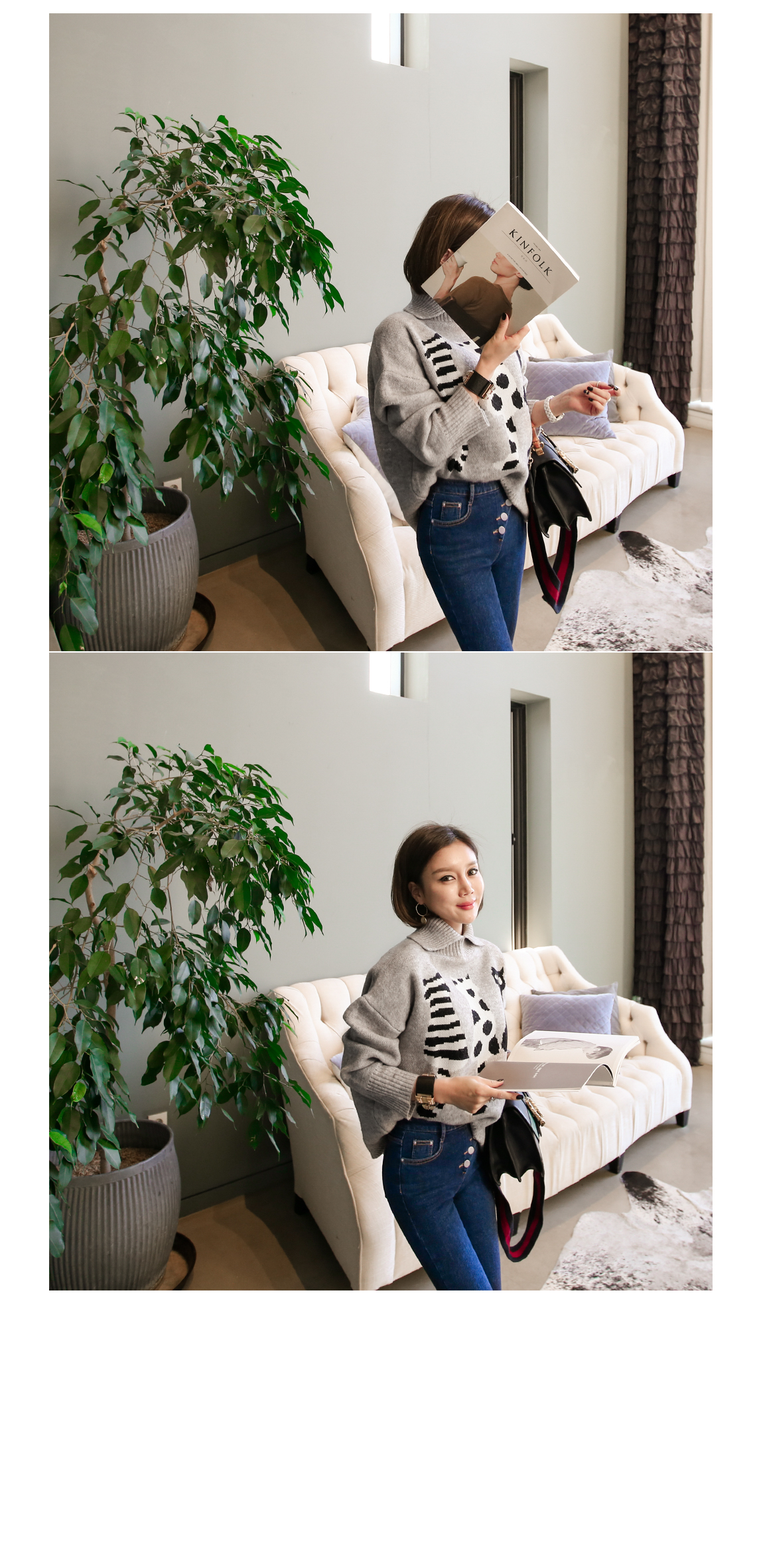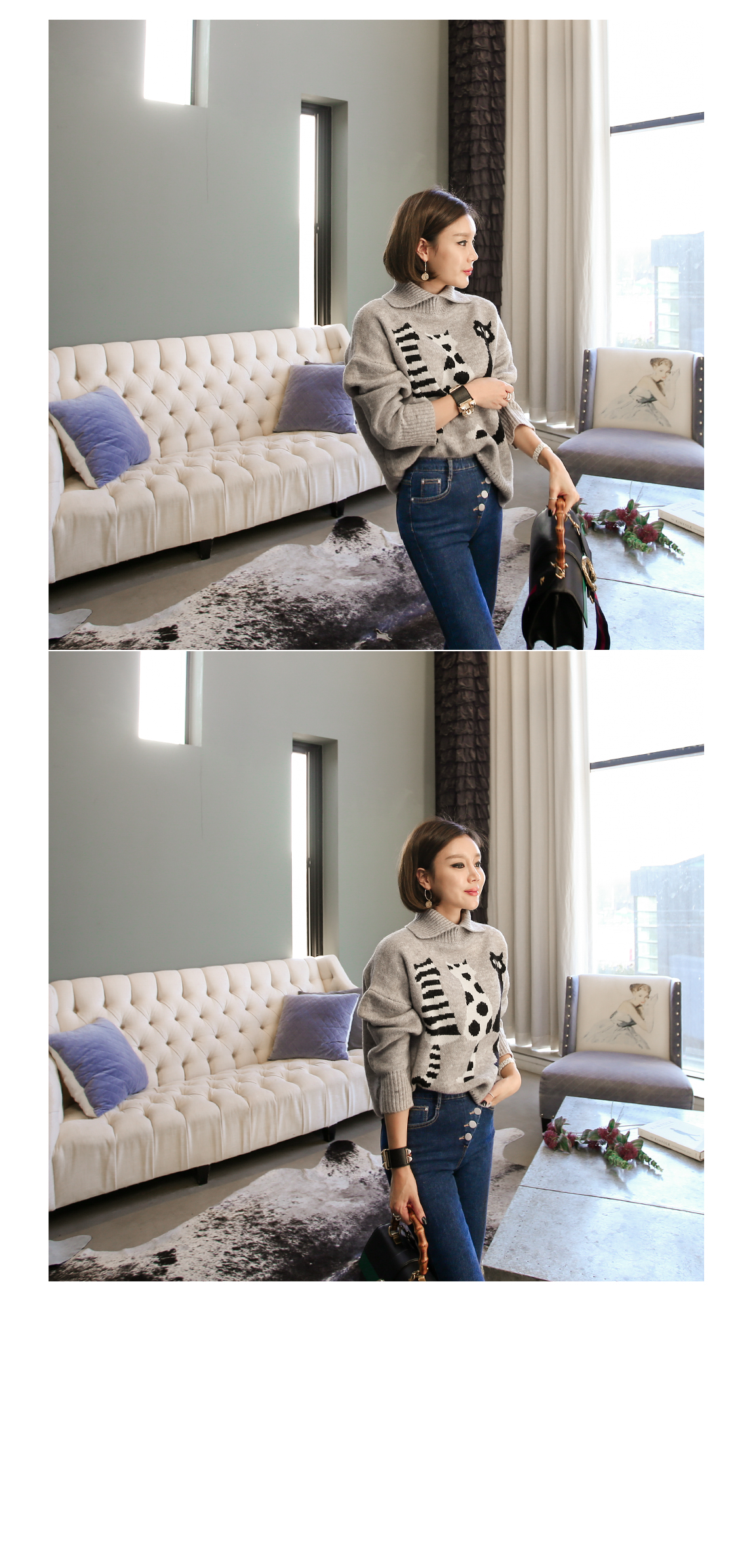 카라를 접어서 연출할 수 있는 디자인 입니다
