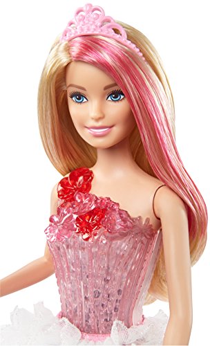 These Barbie princess dolls bring the magic of Barbie Dreamtopia's Sweetville Kingdom to life with child-activated lights and sounds. The fairytale fun is easy to start -- simply pull down on Barbie doll's wand, and the show begins! One of four distinct sound sequences -- including the "Dreamtopia" lyrics from the main title song -- will play with accompanying lights that brighten the doll's bodice. It's a magical moment that's so much fun to use over and over again! The Barbie princess dolls wear outfits inspired by the Sweetville Kingdom. Each has on a gorgeous gown that features the translucent light-up bodice decorated with a bow. The long, glittery skirt has a strawberry print with colorful swirls and white ruffle peplum. Pink shoes are decorated as sweetly as the rest of the look, and a pink tiara adds a royal touch. Fans can recreate favorite scenes from the animated series or dream up sweet new adventures of their own. Choose from Barbie princess dolls with diverse looks that all have pink streaks in their long hair. Includes Barbie Dreamtopia Sweetville Princess doll with light and sound features wearing fashion and accessories. Each sold separately, subject to availability. Dolls cannot stand alone. Colors and decorations may vary.Feature