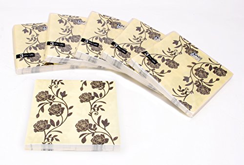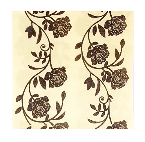 Kiera Grace 20 Count 3-Ply (Pack of 6) Napkins, Yellow with Black Floral Scroll Design