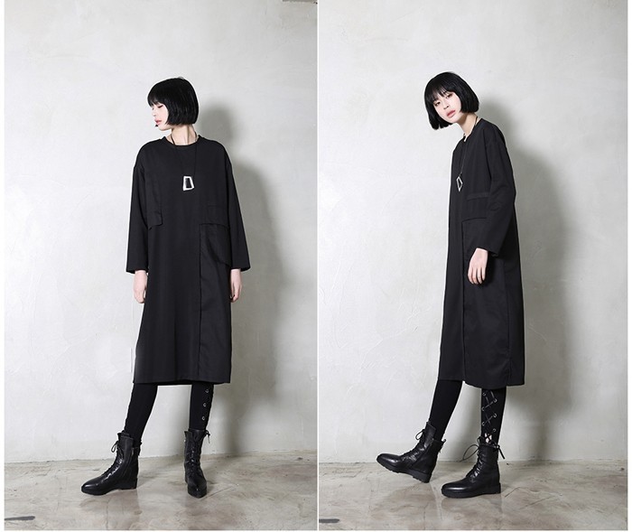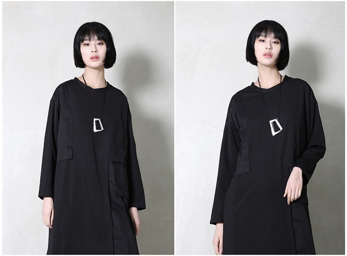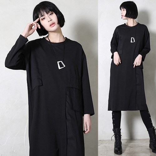 商品名:ワンピース レディース 膝丈 長袖 無地 春 2018 モード系 個性的 40代 ファッション