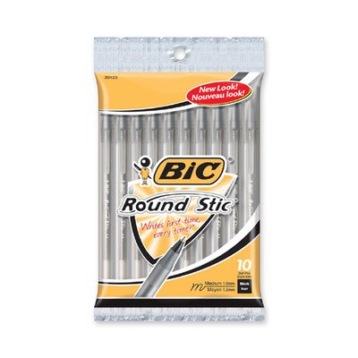 -. Feature : Bic Round Stic Ball Pens Medium Point 10/Pkg-Black
