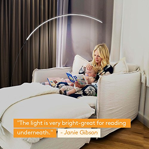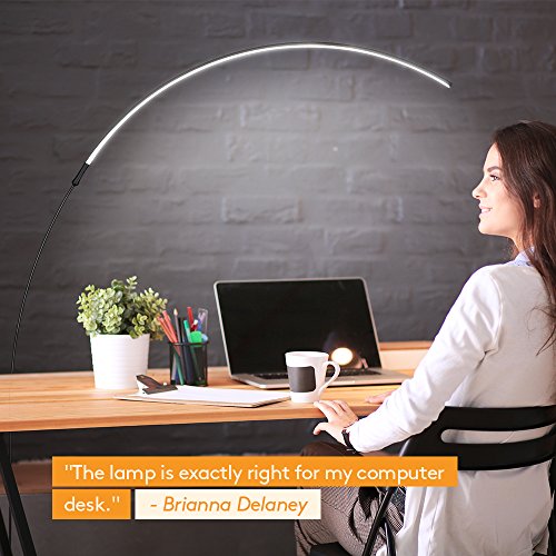STYLISH & FUTURISTIC CURVED DESIGN: Embrace futuristic mood lighting with this crescent-shaped, ultra-thin LED light source on a metal stand. The standing lamp conveniently arches over drafting tables, desks, sofas, or recliners, and its weighted base ensures that it will not tip over. Height extends to approximately 67 inches, but can be changed to a few inches lower with a gentle adjustment of the stem curvature to achieve perfect lighting to see your reading, writing, artwork, and studies.