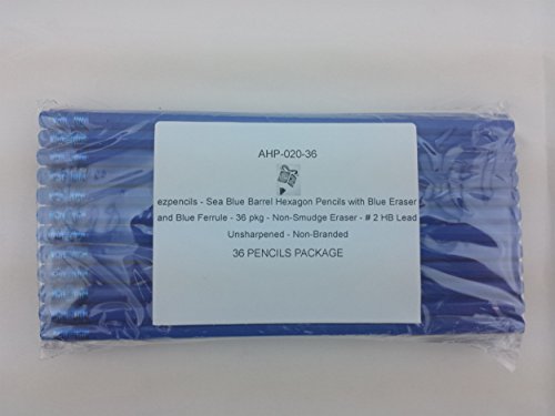 36 High quality woodcased HB No. 2 Lead - Sea Blue barrel with Blue Eraser and Blue Ferrule - Hexagon graphite pencils – Non smear eraser. **Please read all product bullets and scroll down to Product description**