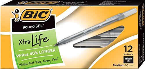 BIC Round Stic Xtra Life Ball Pen, Medium Point (1.0 mm), Black, 24-Count