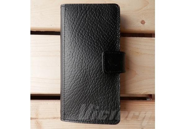 | アイフォンに本物の革カバーを。ストラップも付けられる! |