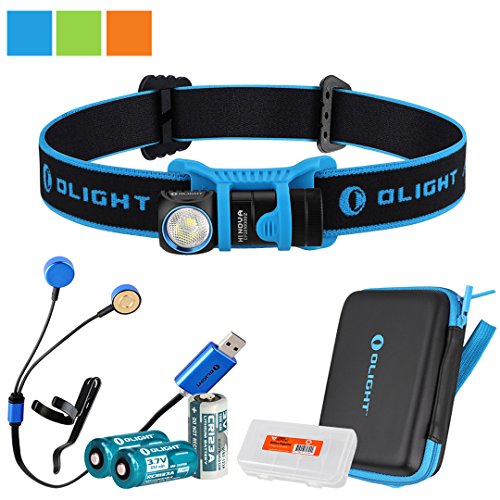 PREMIUM RECHARGEABLE PACKAGE - Includes an Olight H1 headlamp, headband, clip, Olight CR123A battery and a quality pouch to keep everything together as well as a Olight CR123A and two RCR123A Batteries and an compact UC charger and LumenTac battery organizer so you can keep you're light going anytime!