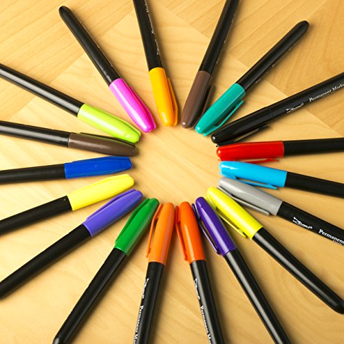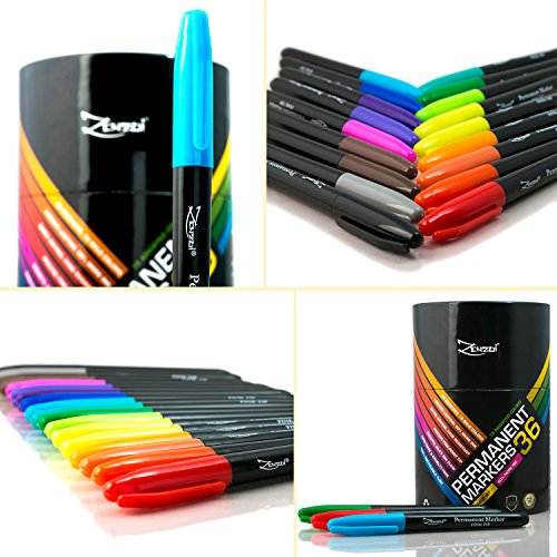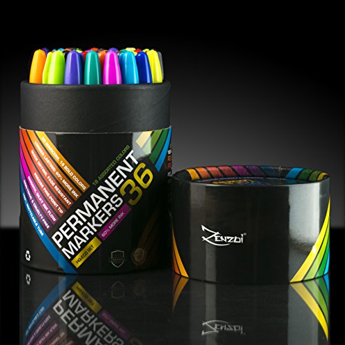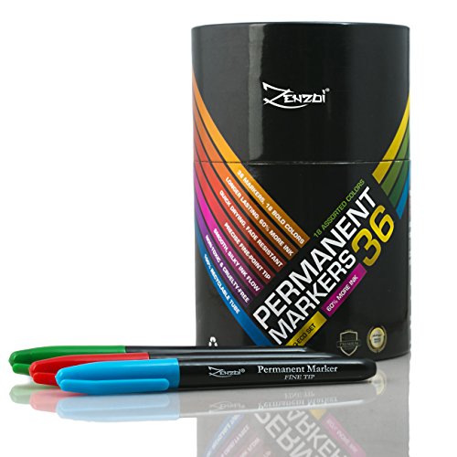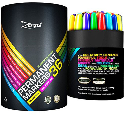 ✅ YOU WANT IT ALL. 36 Permanent Markers in 1 set (1 tube) includes 18 assorted bold, rich color marker pens including black red blue green and 14 more (2 of each color) so you have full variety. Competes with BIC and ultra sharpies markers. Best waterproof drawing markers for classroom teachers students office. Can work on wood glass and are not washable from surfaces.