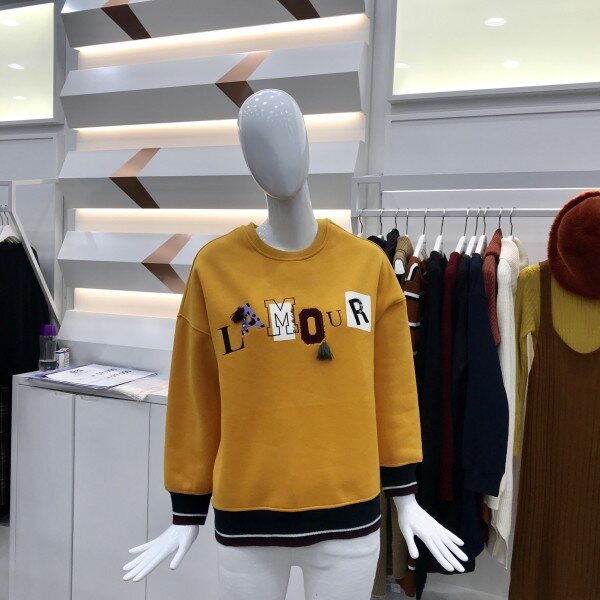 예쁜 이니셜 패치와 장식이들어간 맨투맨입니다. 아래 밴딩처리로 되어있어 활동성이 편하며 스타일리쉬함까지 가지고 있는 제품입니다 :)