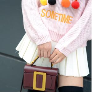 モコモコニットで、思い切りガーリーに合わせるのも◎