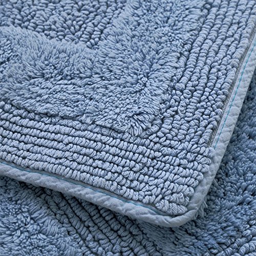 JSJ_CHENG Rectangular Solid Color Reversible Microfiber Pure Cotton Chenile Bathroom Area Rugs for Bedroom, Living Room, Kitchen (17.7inch by 27.5inch, blue)