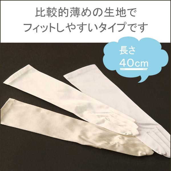 結婚式のため 結婚式のため、オフホワイトを購入しました。 肌なじみが良く、ホワイトのドレスでしたが相性が良かったです。 しっかりした生地で、さらに指部分(親指の所)がストレッチ素材で、伸縮性があって手にフィットします。 お値段以上の価値があると思いました。本当にお勧めです。