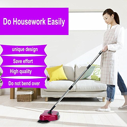 Studio : BingHang Publisher : BingHang Binding : Kitchen Product Description Product Name:Hard Floor spinning broom Material: ABS pro-environment resin Size: Total length 130cm Package Inclued: 1 sweeper broom 1 broom holder Features: Will you feel tiredwhen using it? Definitely not. ABS resin handle isergonomic design with comfortable hand feeling, stainless steel telescopic tubein different derectiongs freely adjusted to best suit their length. Does this spinning broom need electricity? How to work? Does it easy to install? This broom adopt the latest advancedtechnique, No Electricity, No batteries. Push it forward ,it can automaticallycollect the trash into the garbage bin. Easily to use and easy to install . What kind of groundfit for this sweeper?. This broom is fir for the hardened ground(wood floor, tile floor, marbled floor). Don't use it to sweep the stairs anduneven ground (Carpets, Foam Pad). Can the sweeper broom sweep all the places? Does it have dead corner? Yes, it has a dead corner, the broom canclean 98% places except for the narrow places which need to. Every cleaner hasits dead corner. Can this sweeper broom all kinds of garbage? This broom is designed for the family.Mainly aimed for the hair, peanut shell, melon seeds shell, scraps of paper,rice, granular garbage. All of these can be cleaned up. And this is not avacuum cleaner, so it cannot sweep the the tiny dust. NOTE: Using hairdrier blow and warm bent hairbrush straight with distance It cannot use on the carpet Please dismantle and clean all brush rollers if the brush can not turn