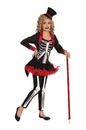 -. Binding : Toy -. Brand : Forum Novelties -. ClothingSize : Large,Medium,Small -. Color : Black -. Department : girls -. Feature : Printed skeleton design on pants and dress / Designed for children ages 12-14 up to 100-lbs / Red sequined hat band and lapels / Look to Forum Novelties for all your Halloween, Luau, Easter, Mardi Gras and St. Patrick's Day supplies -. Label : Forum Novelties -. Manufacturer : Forum Novelties -. Model : 70566-P -. MPN : 7056_456 -. PartNumber : 7056_456 -. ProductGroup : Toy -. ProductTypeName : CHILDRENS_COSTUME -. Publisher : Forum Novelties -. Size : Large,Medium,Small -. Studio : Forum Novelties -. Title : Girl Ghoul Miss Bone Jangles Child Costume, Small -. Warranty : No Warranty
