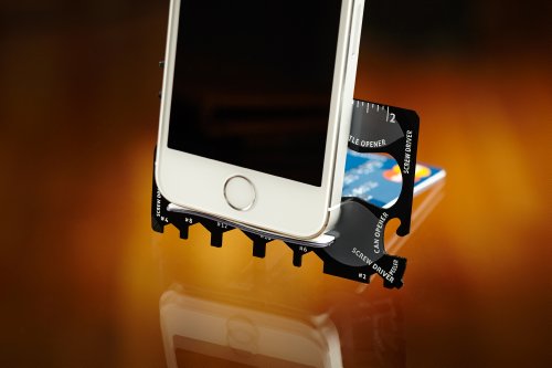 Product Description World's First 100% Flat Multi Tool (18 in 1) and fits in your wallet with credit cards Made from 4x heat treated steel Great for: Repairmen, mechanics, carpenters, hobbyists, boat owners, campers Lifetime guarantee to never rust, bend, or dull 0