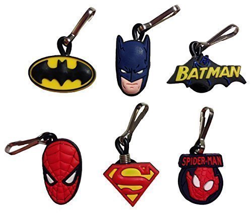 BATMAN AND SPIDERMAN SNAP LOCK ZIPPER PULLS 6 PCS SET #1