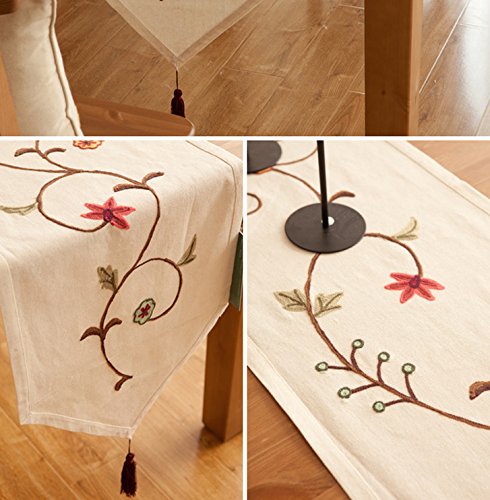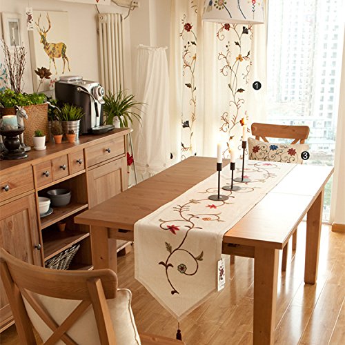 Studio : Ethomes table runner Publisher : Ethomes table runner Binding : Kitchen Product Description Material: linen and cotton Features: elegant pattern Machine washable Better Handwash in lukewarm water You will enjoy the unique design table runner, it adds a tassel decor. They are soft and comfortable, It's perfect to add a touch of mystery and fairytale to your magical event.Brighten your Home kitchen decor. Measurements provided does not include tassels' lengths. 0