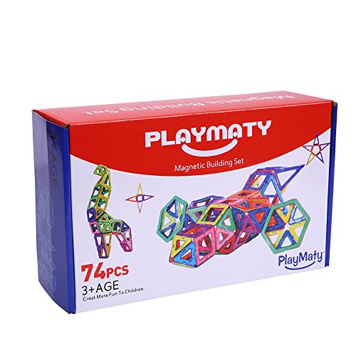 -. Title : PlayMaty 74 Pieces Magnetic Educational Construction Building Blocks Toys Set with Car Chassis and Wheels and Ferris Wheel Carrier