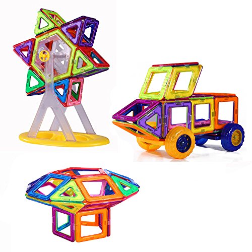 -. Feature : √ ENDLESS POSSIBILITIES|74 pieces total,including 2pcs duamond,4pcs ladder-shaped,2pcs pentagon,24pcs triangles,24pcs squares,2pcs hexagon,2pcs isosceles, a ferris wheel carrier(8pcs),2 car chassis and 4 wheel. / √ LEARN WITH PLAY| Color recognize training, space imagination ability, hand eye coordination and Problem-Solving Skills. / √ SAFE PLAY| Non-Toxic Plastic, Harmless to human and environment. / √ UNIVERSAL APPEAL| This magic toy can be enjoyed by people of all ages, and by both casual and hardcore gamers. / √ RECOMMENDED AGE| 3 years and up