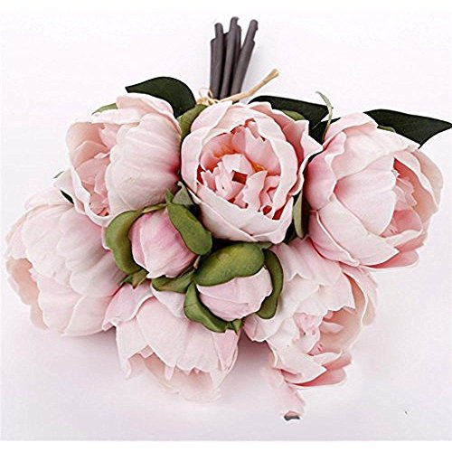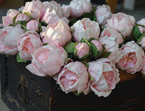 14" Real Touch Latex Small Peony bunch artificial spring flowers for home decor, wedding bouquets, and centerpieces (6 PCS) (Shabby Chic Pink)